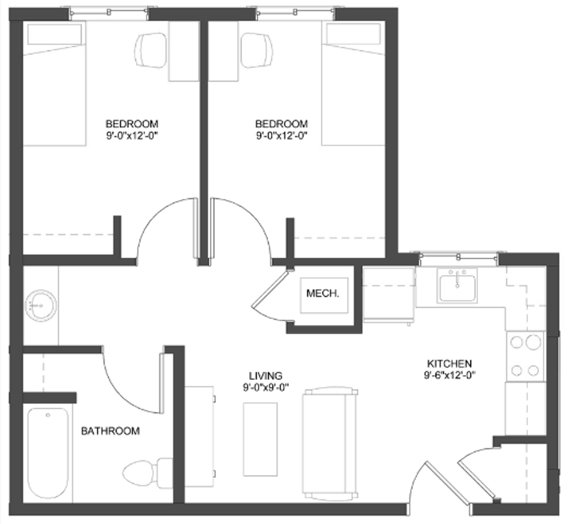 Two-Bedroom Apartment – $6,500 per school year per bedroom with 10 monthly installments of $650/month beginning in August.