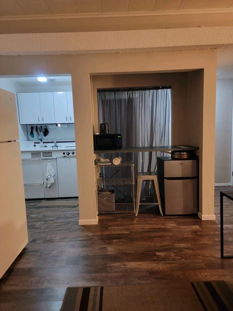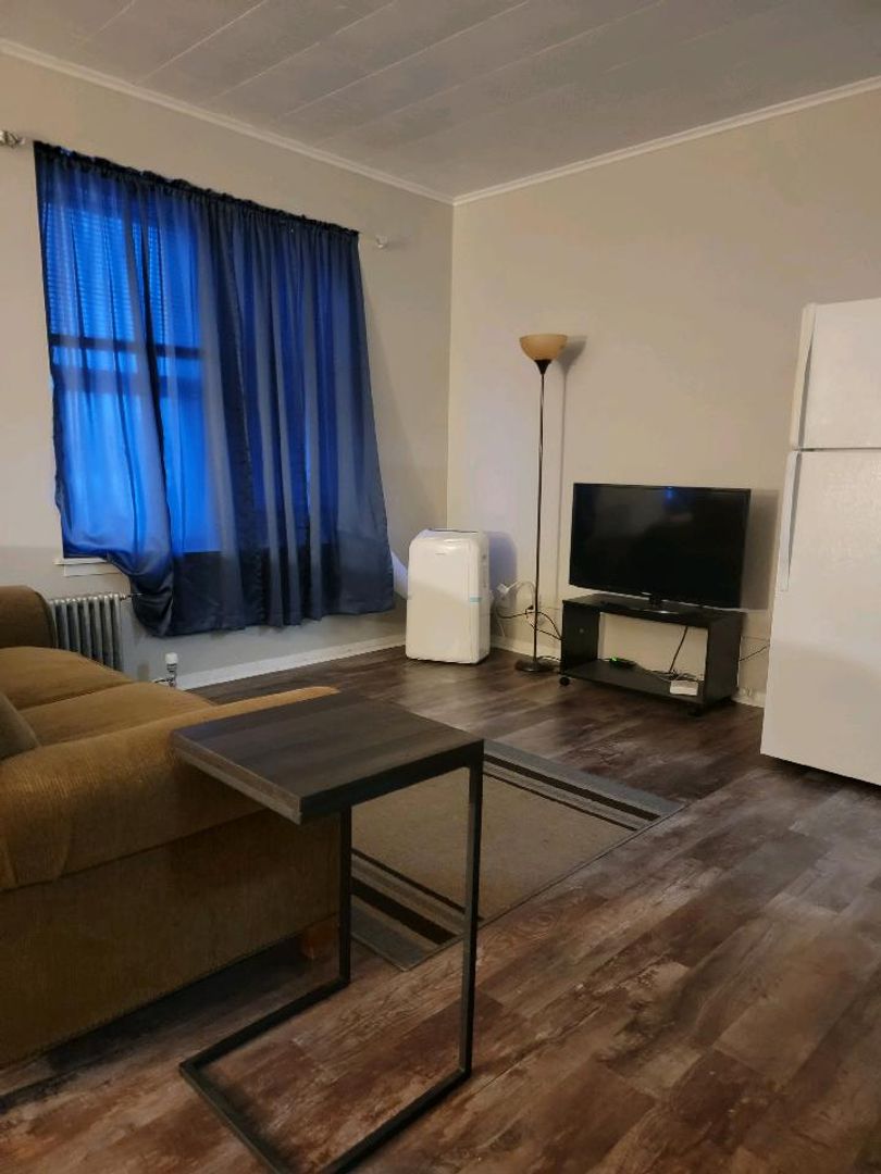 Full furnished efficiency unit that includes all utilities. Located on the 3rd floor with on site laundry and off street parking. Just a block off Main Street. Minimum of 3 month lease.