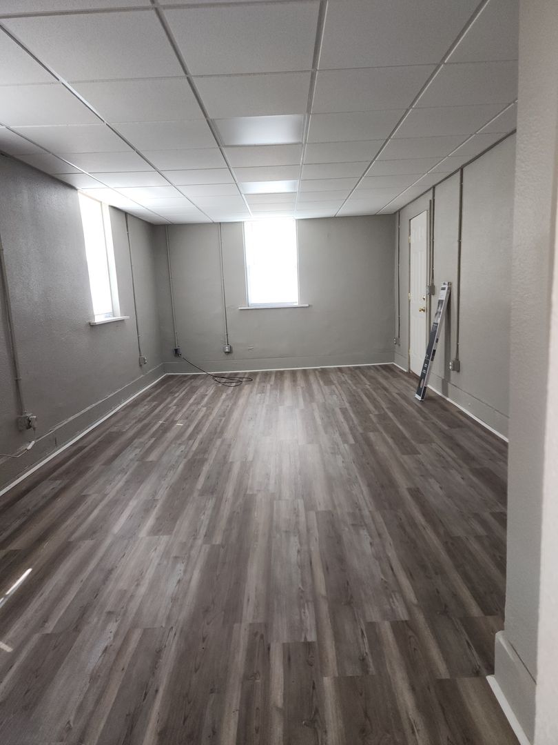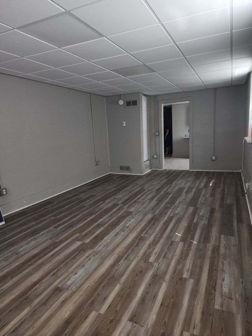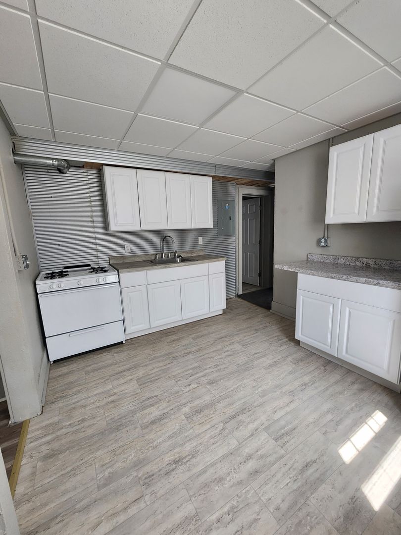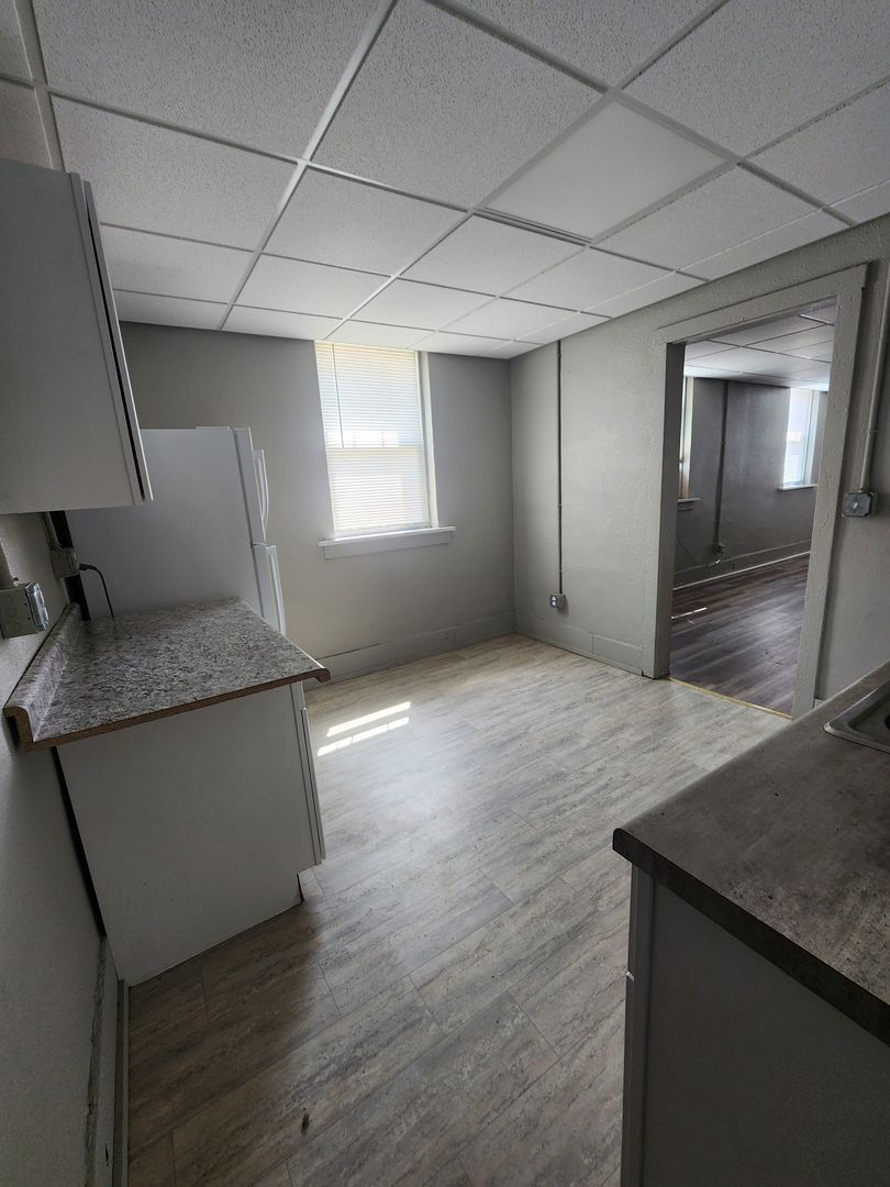 This charming 1BR unit offers a bright and cozy living spaces perfect for comfort and convenience. The kitchen boasts modern countertops, ample cabinetry, and updated plank flooring. A large window brings in natural light, creating a warm atmosphere. The unit features a private bedroom with ample closet space and a well-designed bathroom. It also offers both a front and back door for easy access, along with off-street parking and convenient onsite laundry facilities.